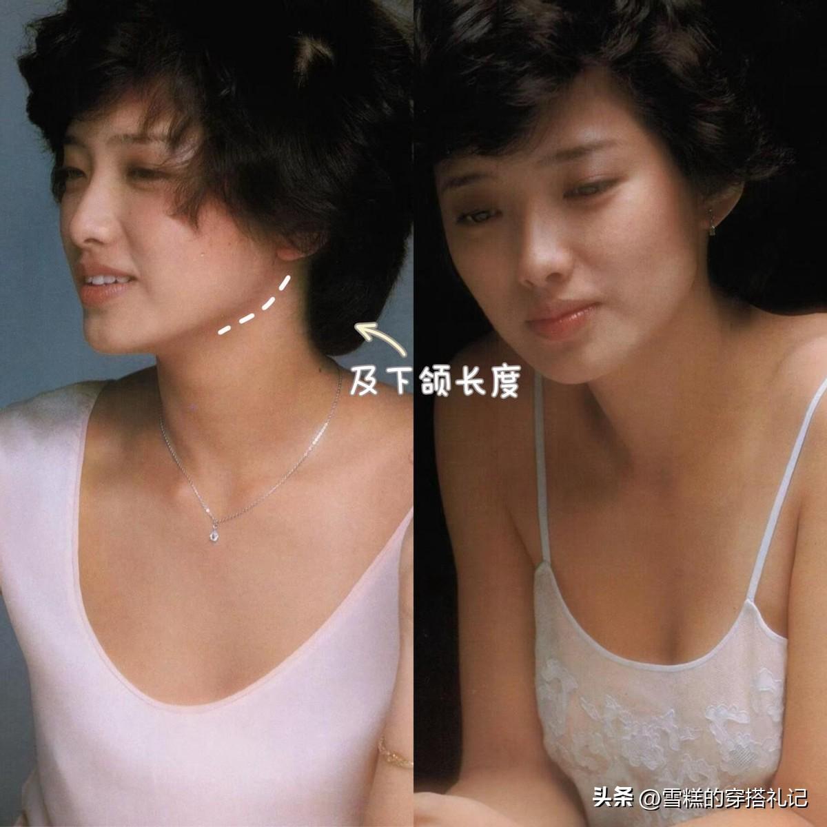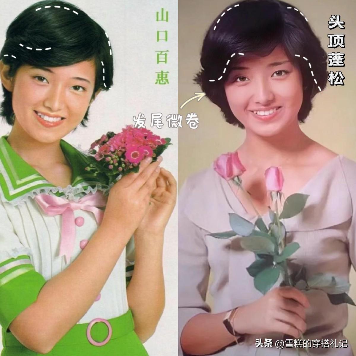 山口百惠的美,體現在很多方面,其中最突出的就是髮型,相比起清一色的黑長直,山口百惠嘗試的這款短捲髮,更符合臉圓、臉方以及面部比例不協調的長相。