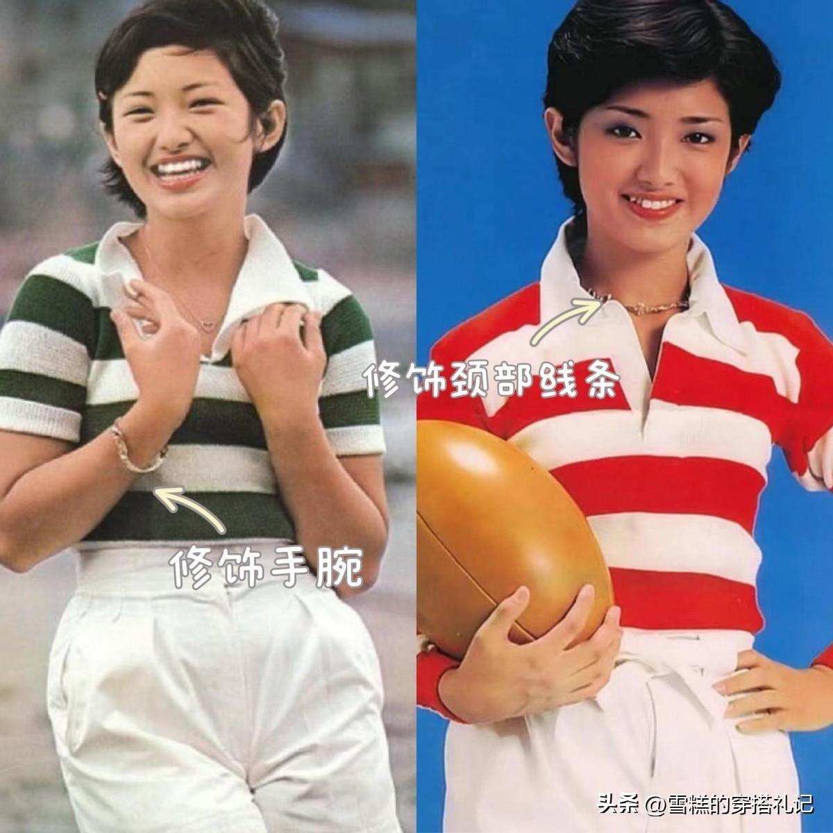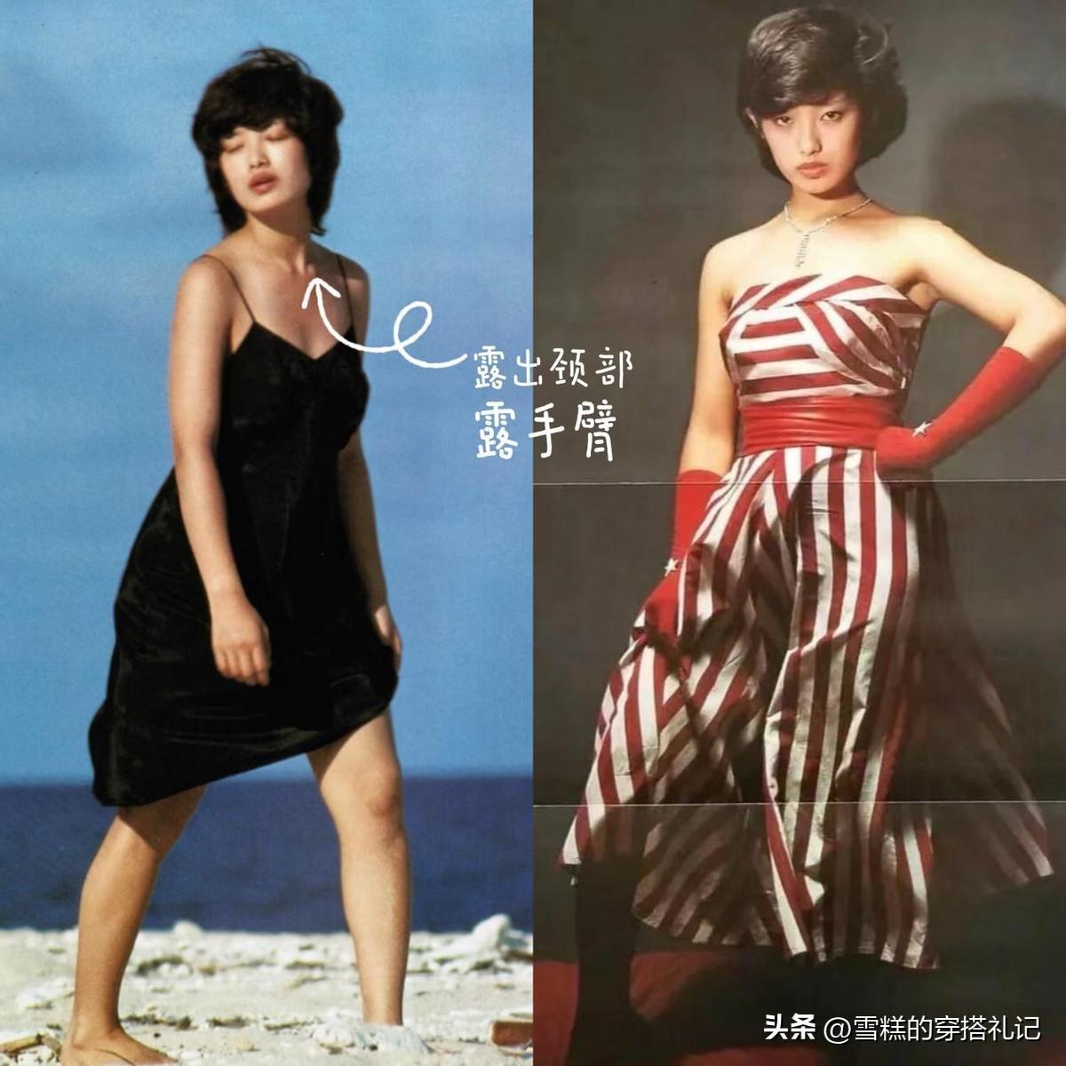 仔細觀察山口百惠的穿搭,你就會發現,她很少會打扮的特別保守,大多數的服裝,都會恰當的露出肌膚線條,對於她這種微胖身材而言,還是很有幫助的。