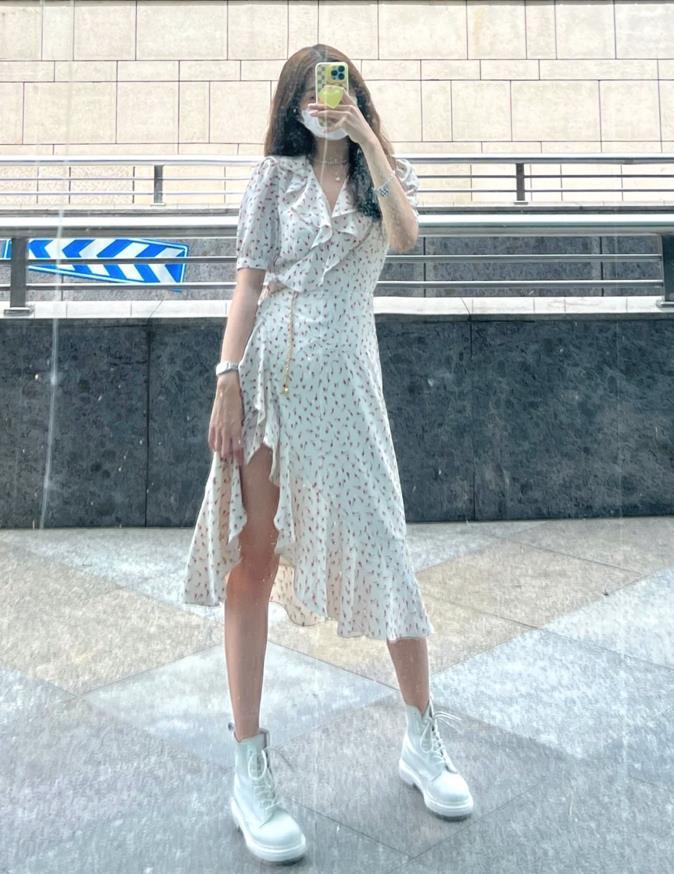 韓系小姐姐的穿搭,喜歡的姐妹們都可以學起來,荷葉邊開叉碎花連衣裙,這種裙子的設計,還是蠻有小心機的,細節感滿滿。搭配白色馬丁靴,不僅有少年感,還多了一種甜酷範。