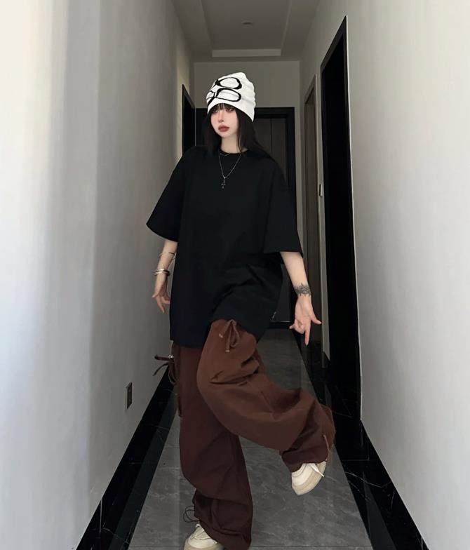 今年無性別風的穿搭真的太帥了,這種風格你也可以稱爲中性風,完全不挑性別的,黑色t恤+拖地闊腿長褲,上下的版型都是寬鬆的,這麼組合在一起,鬆弛感十足。
