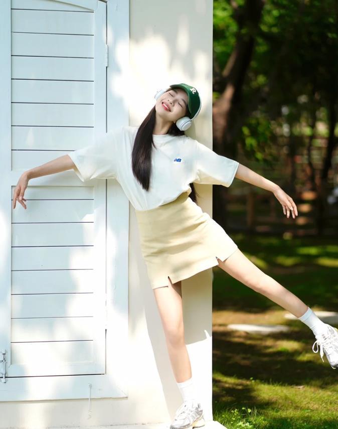 很適合踏春、逛街約會的穿搭,米白色的半身短裙+白色短袖t恤,記得要把t恤的下襬全部塞進裙子裏面,輕鬆提高腰線,小個子女生這麼穿,不僅顯高挑,還很顯腿長,青春減齡少女範十足。