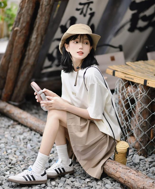 在夏天的穿搭裏,t恤總歸是不能缺席的,哪怕是一件簡單的款式,也可以幫助你打造出各種時髦的造型。大大版型的t恤,寬鬆的版型,穿起來也太藏肉顯瘦了,搭配一條百褶短裙,不僅顯青春減齡,還帶着滿滿的少女範。