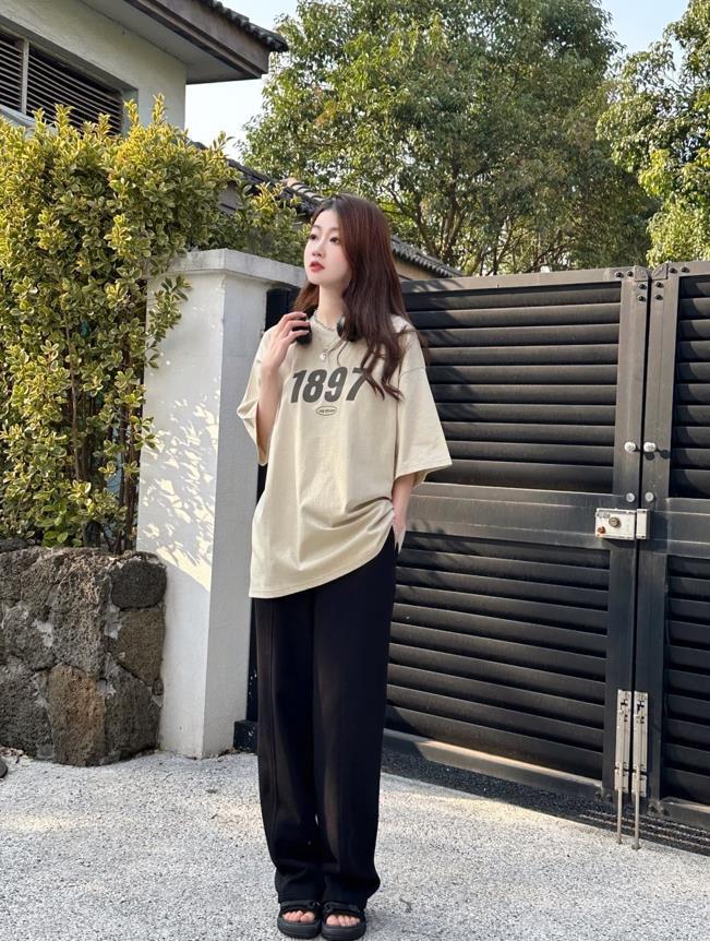 小個子女生穿這種t恤也是沒有任何問題的,搭配深色寬鬆長褲,酷酷的中性風,隨性又自在。配短褲的時候,就玩轉起下身失蹤,拉長身材比例。