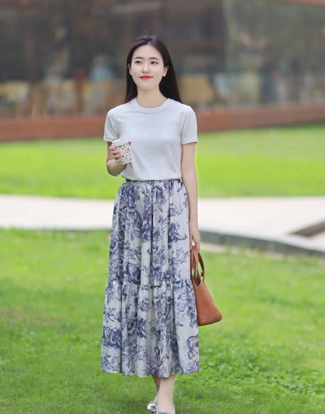 白色t恤可以與一切的衣服相配,選擇簡單百搭的款式即可,和碎花裙、牛仔褲、西裝褲這些下裝相配,簡簡單單就很好看。喜歡浪漫溫柔一些的話,碎花裙的結合最合適不過,裙子的長度建議到小腿的位置。