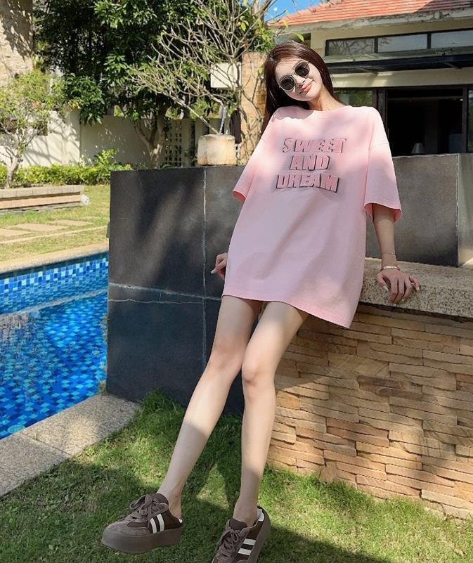 今年很流行穿粉粉嫩嫩的顏色,所以這一件粉色t恤,你不妨試試看,字母印花t恤的設計,視覺衝擊很時髦,加上寬大的版型,慵懶、休閒範十足。
