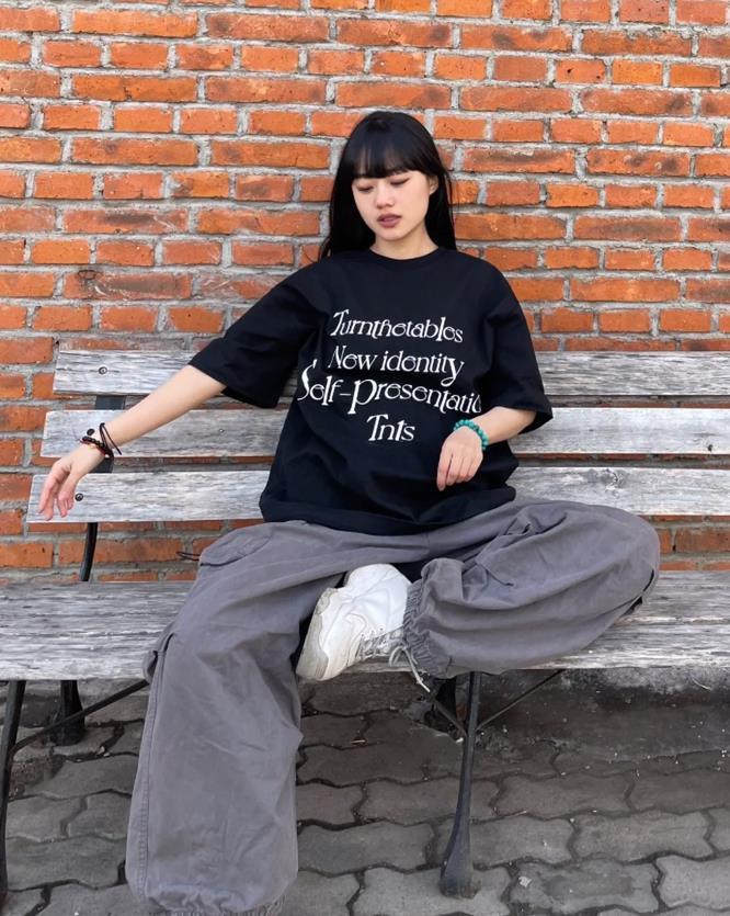 日常穿搭真的很愛這種基礎款,黑色短袖t恤,百搭又耐看,最重要的是穿起來有效遮掩身上的缺點,顯瘦藏肉的效果也非常不錯。撞色字母印花設計,也展現出時髦感,搭配牛仔褲、闊腿褲、運動褲就很帥氣啦!
