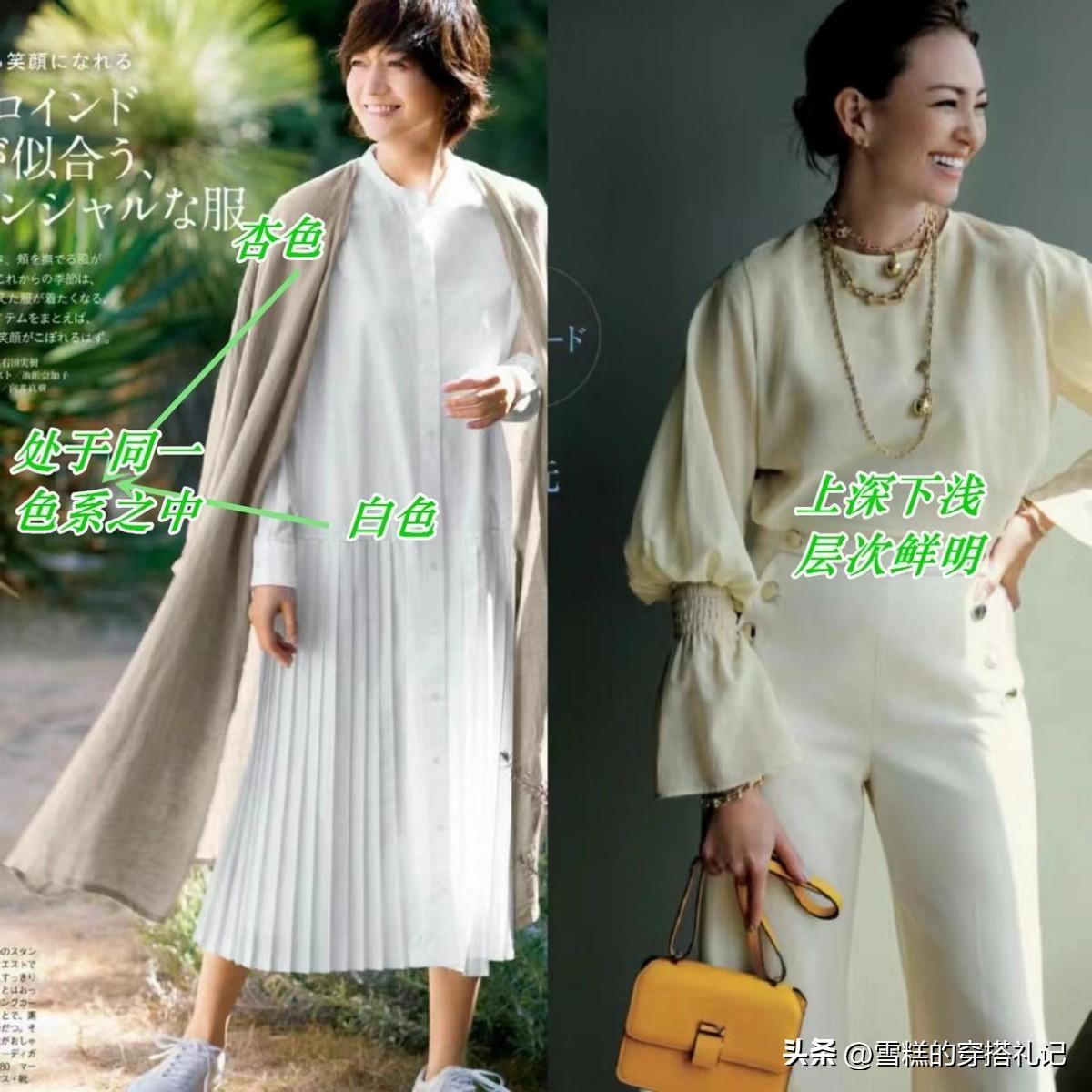 對於中年女人來說想穿出極簡風也可以從同色調結合出發,上衣與下裝,完全都是一個顏色,穿起來會更加的優雅得體。比如這種白色系列的同色搭配,將低飽和度的奶白色和杏色搭配在一起,給人乾淨清爽的感覺。
