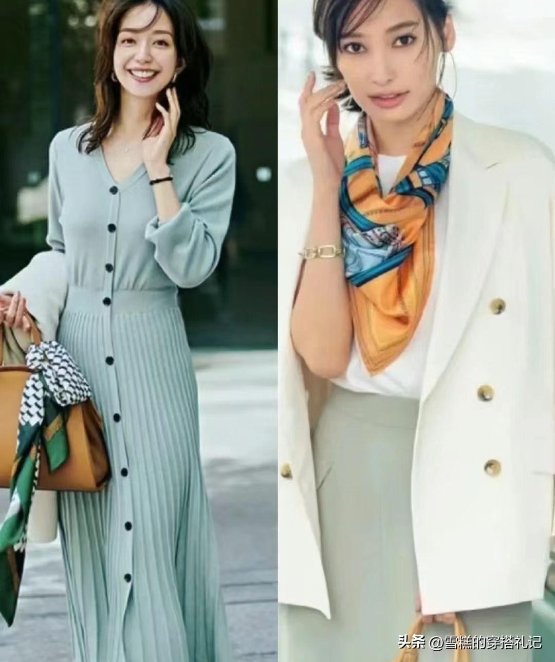 第二套、脖戴絲巾,配基礎款服裝更加出彩