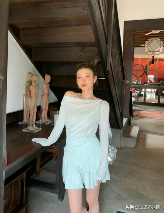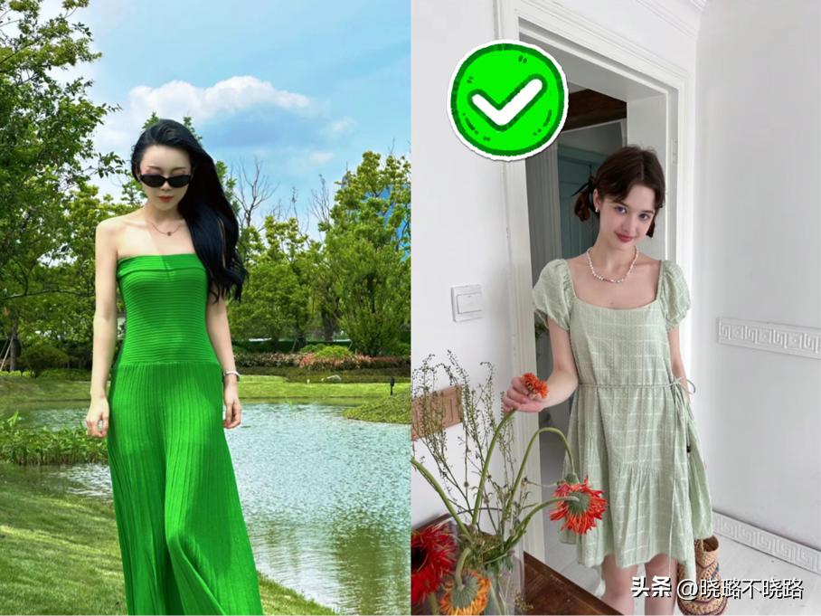 像這種輕盈的顏色要最大程度發揮它的色彩優勢,可以選面料方面做切入點,像是薄紗和綢緞等面料都是能讓薄荷曼波更加驚豔的面料哦。