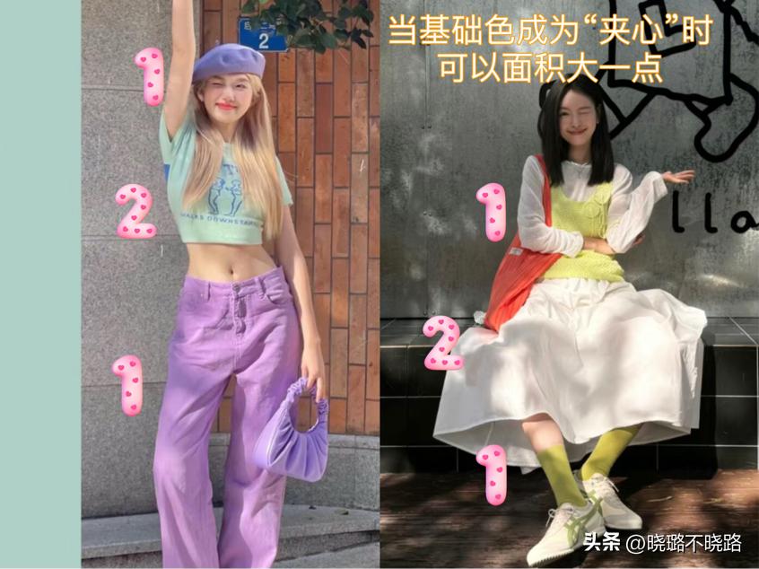奧利奧夾心配色法顧名思義就是兩個顏色中間夾一個比較低調百搭的顏色,因爲彩色要成爲主角,因此今天你選擇哪款彩色,哪款彩色的佔比就要成爲配色佔比中最多的那一個。