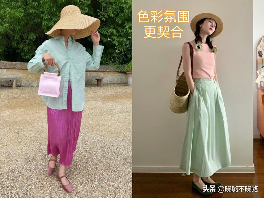但是夏天不一樣,比起穩重的質感來說,夏季更追求“輕盈的靈動”,因此小編就不建議大家夏季再穿黑白灰或者美拉德了。