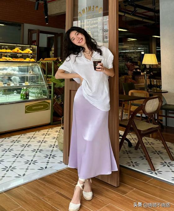 我一直認爲紫色是一個非常復古的顏色,今年夏季這個淡紫霧色就是妥妥的復古冷色,同時是具備機制少女感的一個顏色,很夢幻。並且可塑性強,跟OL通勤單品結合,淡紫霧色展現出來的就是氣質感,跟休閒單品結合,淡紫霧色就是年輕時尚的。