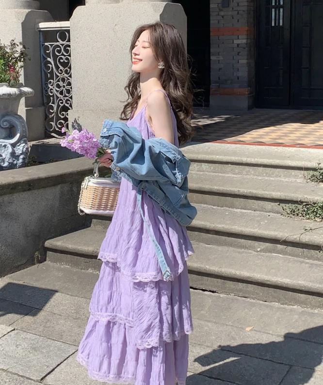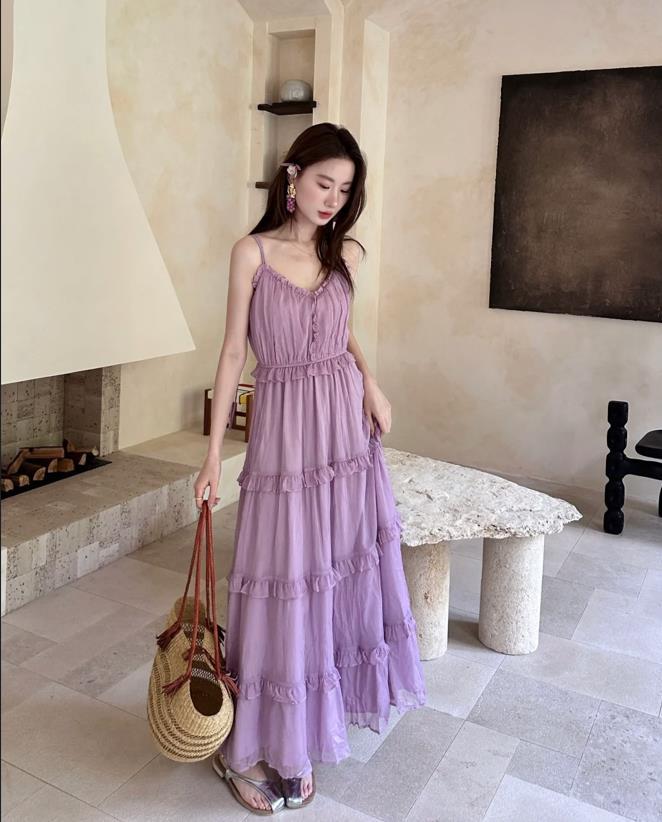 今年丁香紫色突然就火了起來,這個顏色只要看過的姐妹,相信沒有誰會拒絕的啦,自帶優雅和氣質,吊帶的款式,很適合炎熱的夏季。
