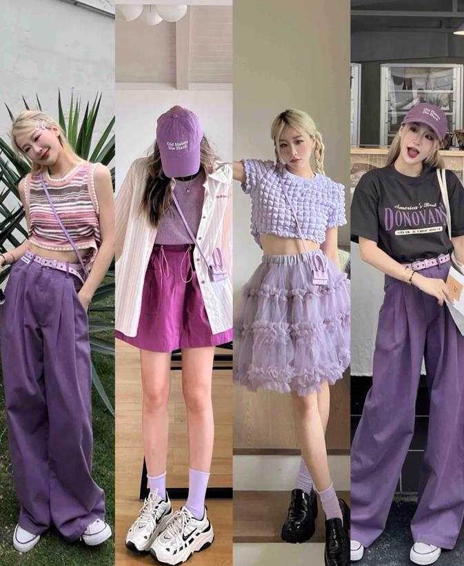 對於黃黑皮的姐妹來說,丁香紫可能會顯得膚色比較暗沉,對於這種情況,你可以減少直接接觸皮膚的丁香紫單品,選擇丁香紫半身裙、褲子,或者是包包、鞋子等,小面積的丁香紫色單品,並不會對膚色造成什麼影響。反而會提亮整個造型的時髦度。