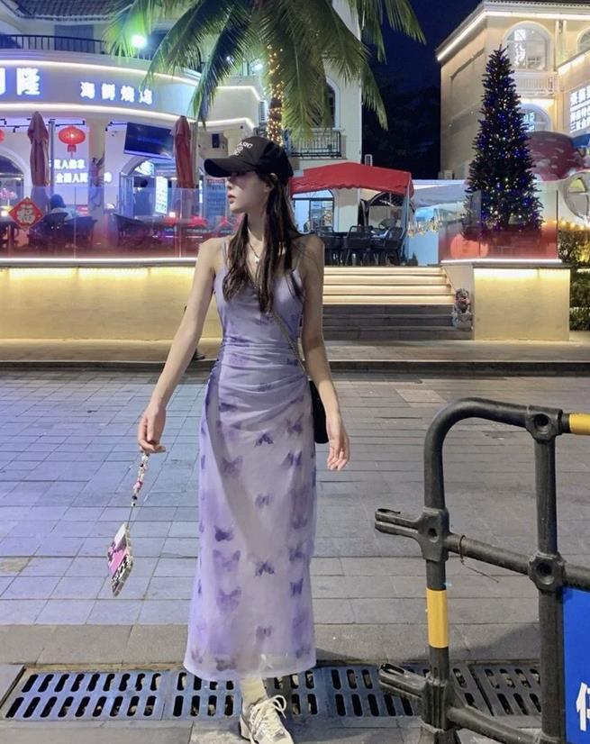 這款丁香紫連衣裙也太美了吧,優雅的紫色,上面還印着翩翩起舞的蝴蝶印花圖案,整件裙子流露出濃郁的法式風情,不管是夏日度假,還是出遊逛街,都是你最佳的選擇,混搭一雙運動鞋,又多了幾分舒適感。
