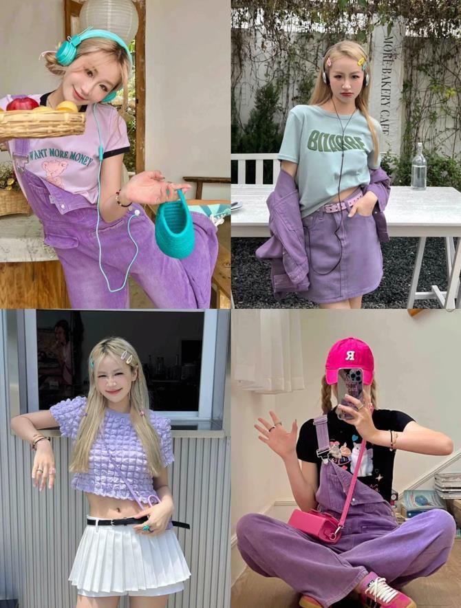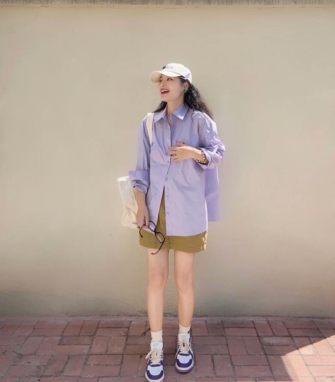 這種丁香紫色看起來就非常溫柔,洋溢着屬於青春少女的氣息,在這個色調的襯托下,整個人都明亮動人起來。不僅襯托膚色,還能給人一種高雅大方的效果,一整套穿搭利用了疊穿,不僅展現出優美的身材比例,還給人一種修長纖細的既視感。