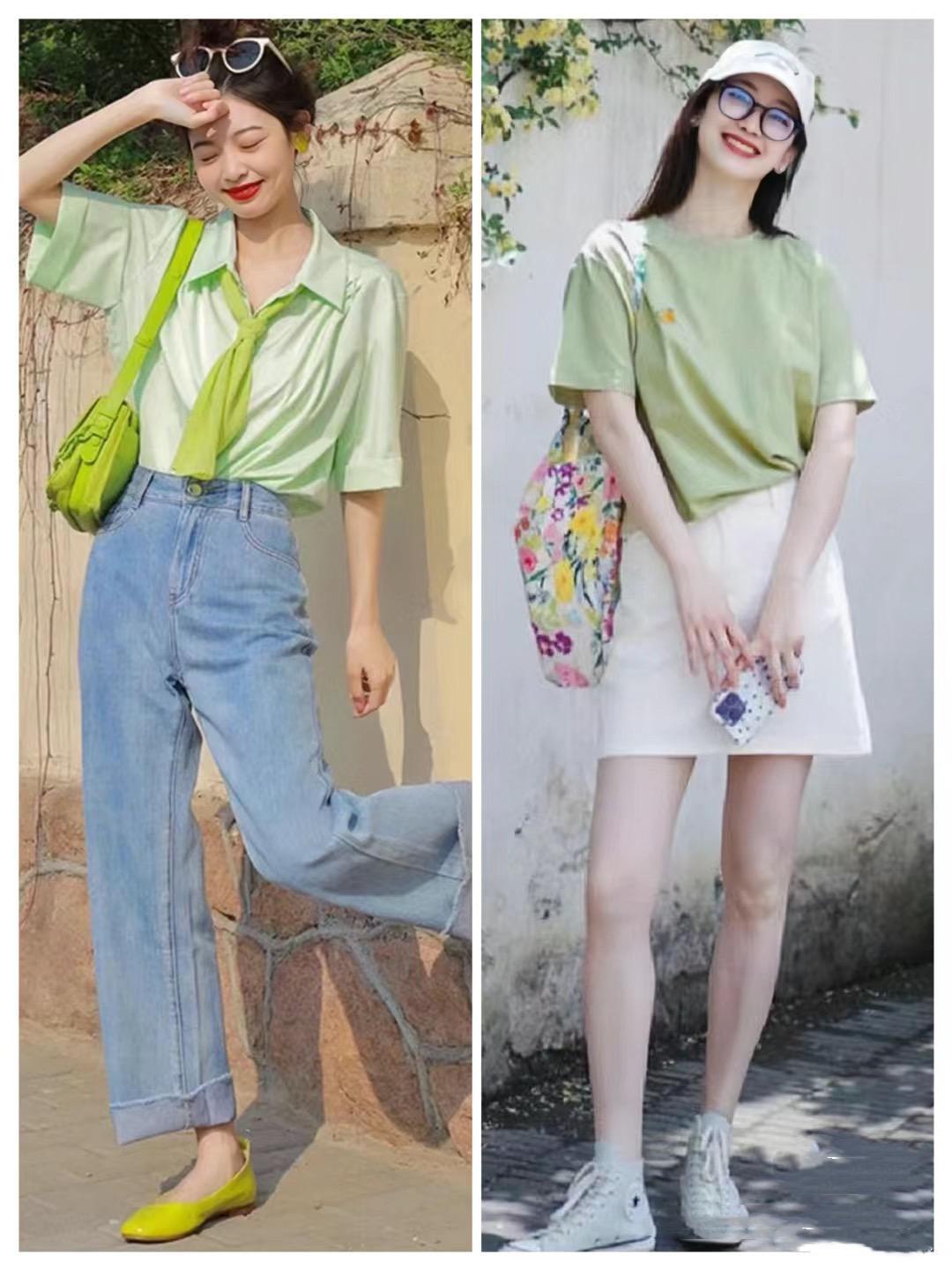 淺綠色的襯衫、或者T恤,以及半身裙、連衣裙、單肩包、低跟鞋等等,在這個夏天都可以爲我們的穿搭增添一抹鮮亮感。