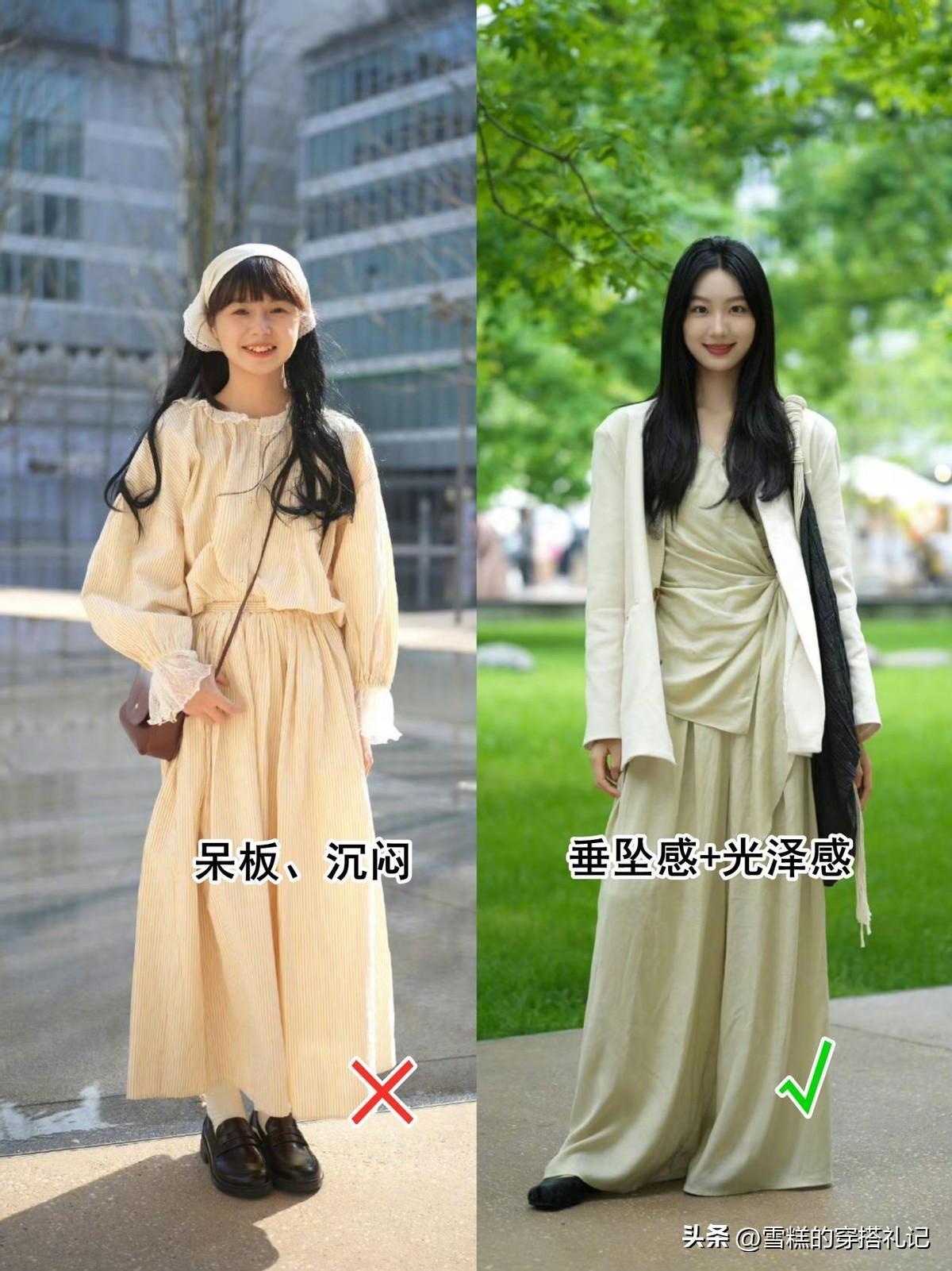 ▼從材質來看,雪紡和緞面垂墜感強,牛仔和棉麻更加立體