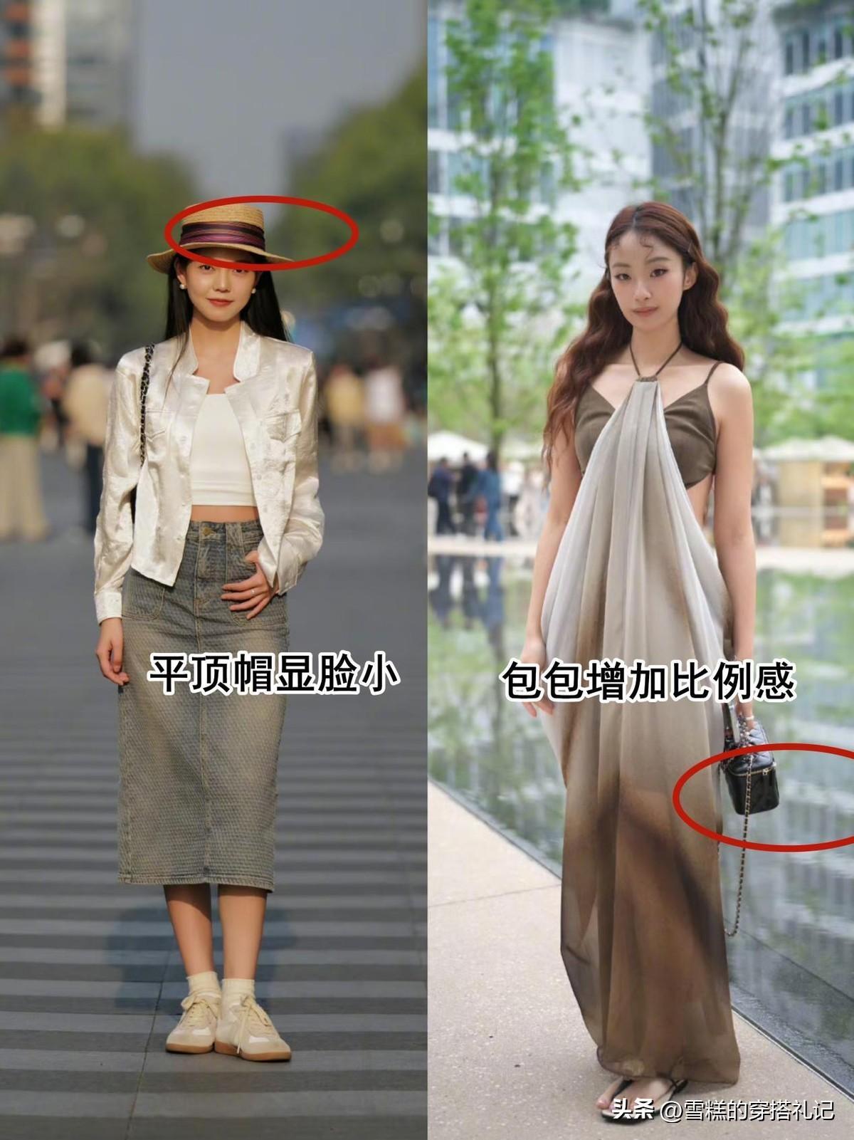 爲什麼杭州女生的長裙與平底鞋搭配就格外的時尚洋氣?關鍵在於對於配件的精心搭配。比如這種寬帽檐的平頂帽,既可以將臉部修飾的更加小巧精緻,又能夠增加穿搭的造型感,顯得整個人洋氣許多。而包包的加持不僅僅可以豐富造型,還可以,更好地分割上下的身材比例,展現出高挑纖細的感覺。