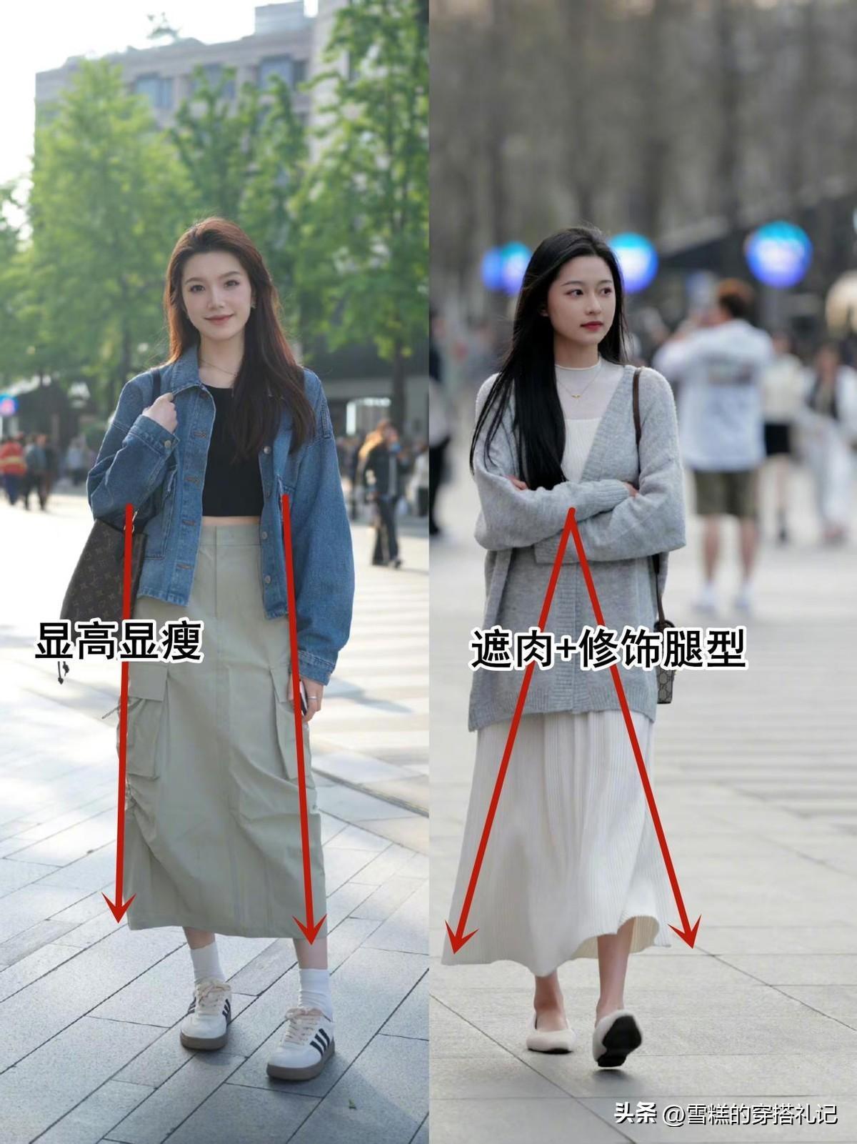 ▼從版型來看,腿粗選擇A字款,腿細選擇包臀or直筒