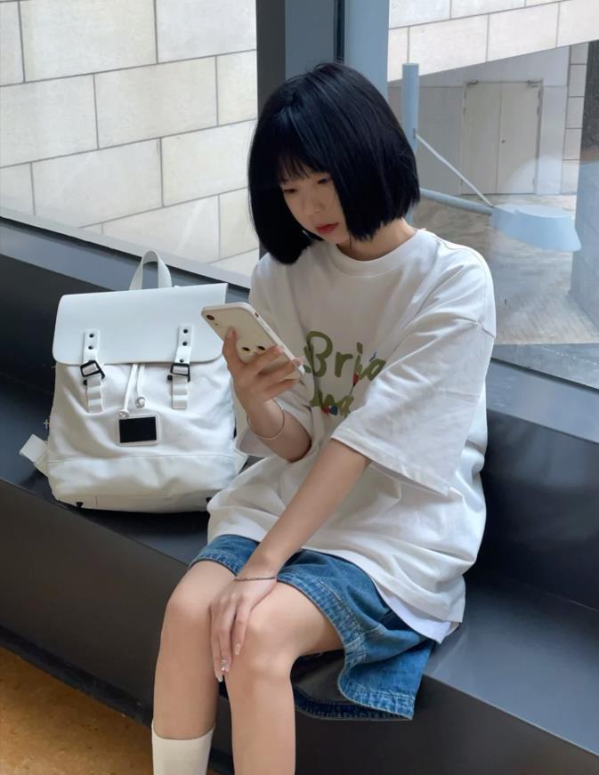 這一套穿搭清新又脫俗,充滿了青春與活力氣息,給人無比清爽涼快的感覺,白色的寬鬆t恤,搭配藍色牛仔短褲,簡直太配了吧。