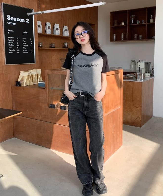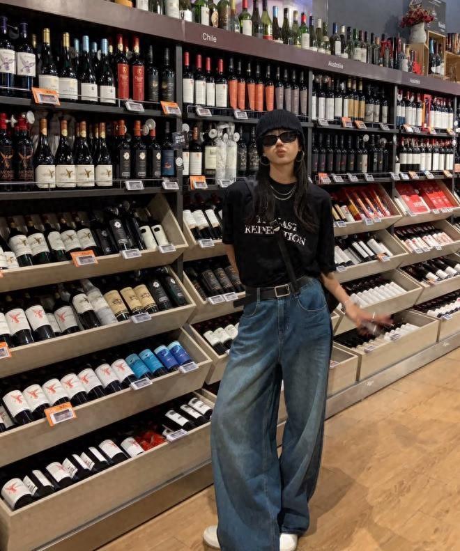 要說在夏日的標配是什麼,我覺得當然是短袖t和牛仔褲了,黑色插肩短款t恤,穿起來很好修飾身材,達到顯瘦的效果。完美修飾了肩部線條,短款+修身的設計,更是很好凸顯了身材優勢,下身搭配一條做舊牛仔褲,寬鬆舒適,同樣具有極佳的顯瘦效果。