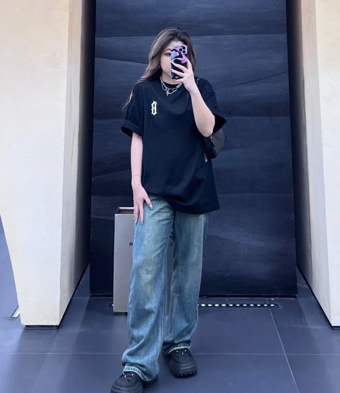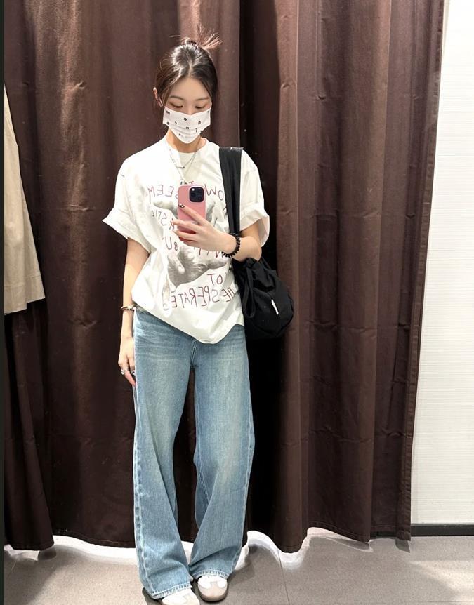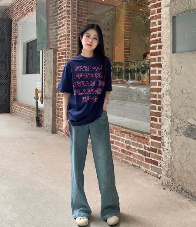 這種寬鬆舒適的t恤,真的是很喜歡啊,穿在身上洋溢着青春氣息,下身配的是一條牛仔闊腿褲,超喜歡這種簡單又愜意的鬆弛感着裝。進入夏季,就是要穿得簡單一些,簡潔的t恤配牛仔褲,清新又幹淨,休閒自在的感覺能讓人在炎炎夏日裏感受到舒適。