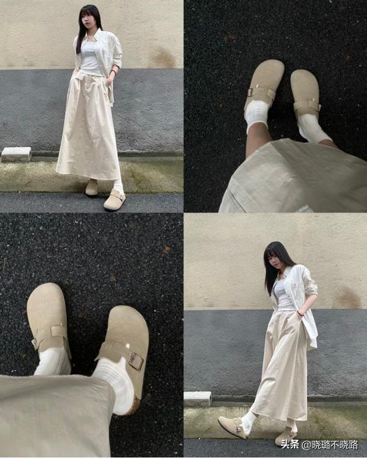 勃肯鞋的穿搭時髦可以借鑑服飾的獨特穿法,今年流行了連衣裙套長褲的穿法。連衣裙的長度要離腳踝有10公分以上,配寬鬆的牛仔褲或者是雲朵褲,自帶愜意舒適,溫柔淡雅。
