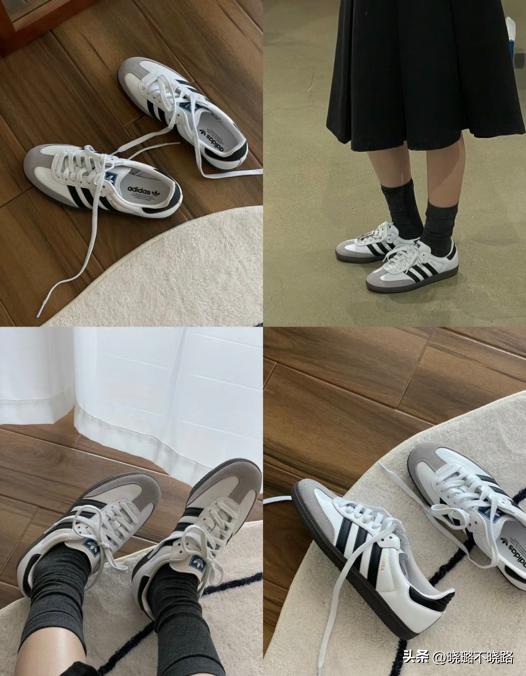 想到運動鞋,就覺得很難和洋氣時髦、知性優雅掛鉤,但是這種鞋子舒適好穿很難讓人割捨,所以進行了改良優化,因此德訓鞋出現了。鞋底輕薄、小圓頭設計減少了運動鞋的粗糙感,看起來精緻不少,還顯得腳小;鞋面帶有條紋的設計,讓鞋子有層次與時尚,怎麼搭配都時髦好看。