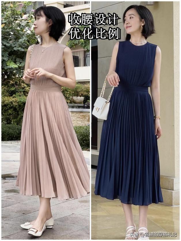 這種身材的女生也就是我們常說的梨型身材,建議優先選擇百褶或A字裙設計的裙子。因爲這樣的裙襬設計通過在腰部處輕微勾勒,不僅可以有效的突出我們的曲線之美,同時在臀部和胯部位置提供了充分的遮擋,可以起到很好的修飾效果。同時也能呈現出視覺對比,更加彰顯了我們身形的苗條狀態。