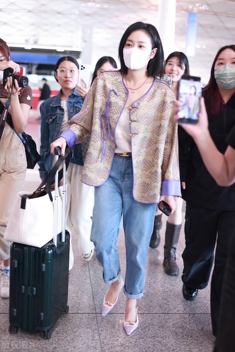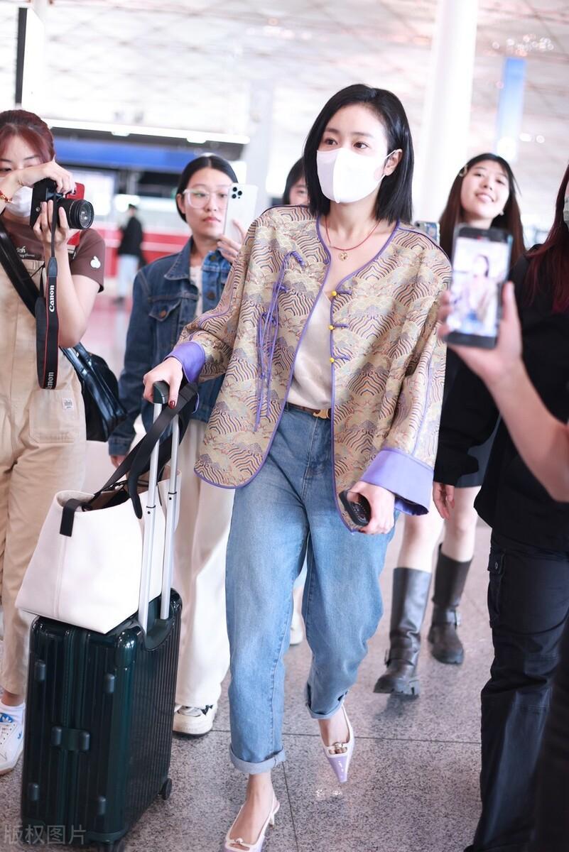 “大嫂”高葉走機場,也帶火了一種穿搭。叫做:“新中式上衣+牛仔褲”,優雅顯貴、氣質出衆。
