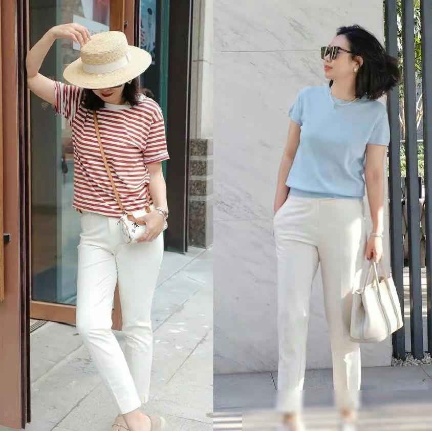 夏天裏的悶熱,在一條小白褲的修飾下瞬間變得涼爽起來。我們還可以選擇面料透氣、舒適的小白褲,搭配九分褲的剪裁,也會更利落顯腿長。
