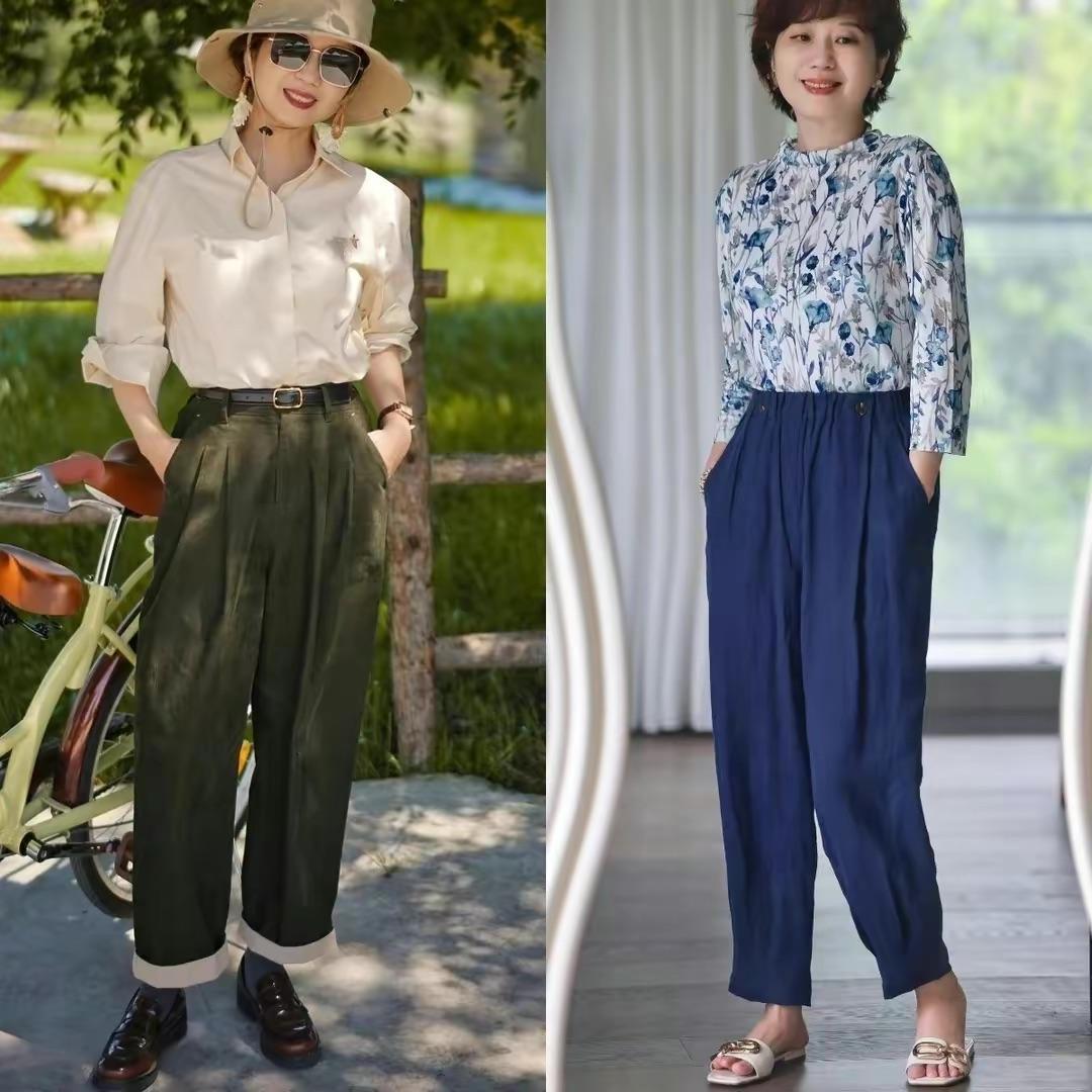 其實奶奶褲,就是泛指奶奶輩喜歡的一種褲型。它寬鬆、垂順、腰腹部利用立體打褶、面料輕柔透氣,上身既舒適又體面。