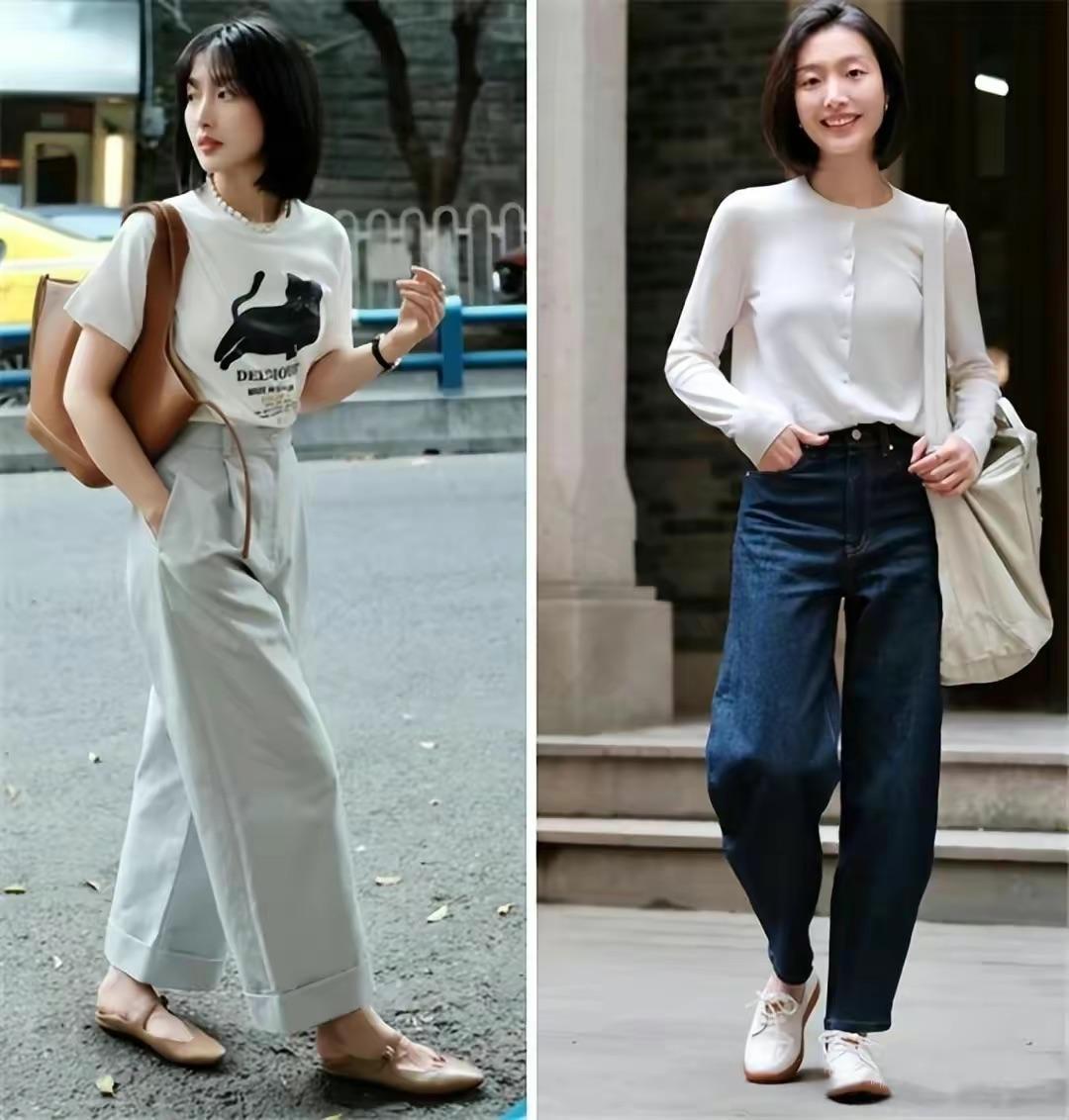 稍微寬鬆一點的直筒褲,舒適性和包容性都更強。我們可以穿高腰的直筒牛仔褲、或者直筒的小白褲,配垂順的面料、都更顯高。