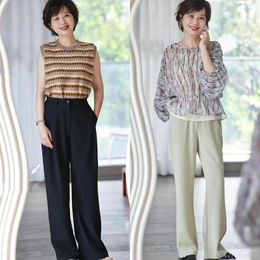 面料垂墜的奶奶褲,本就應該是大方的、顯貴的。夏天裏的奶奶褲,更是應該做到輕薄透氣、舒適垂墜,寬鬆挺闊。
