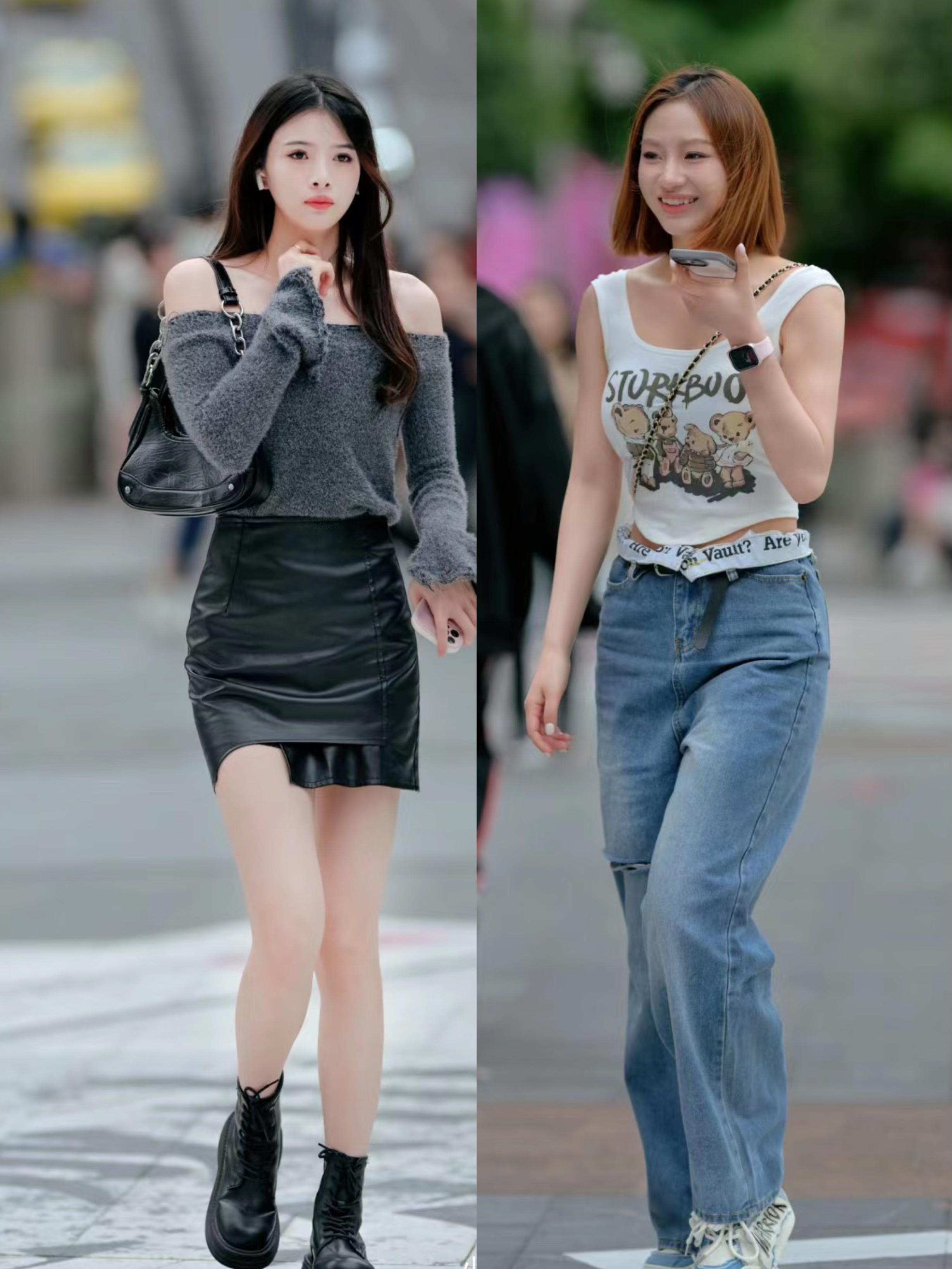 露大腿、穿皮靴,短T恤配及地裙。這種兩極化的穿搭,也成爲網紅式穿搭代表。從最初大衆的不理解,到盲目跟風,似乎也成爲一種潮流。