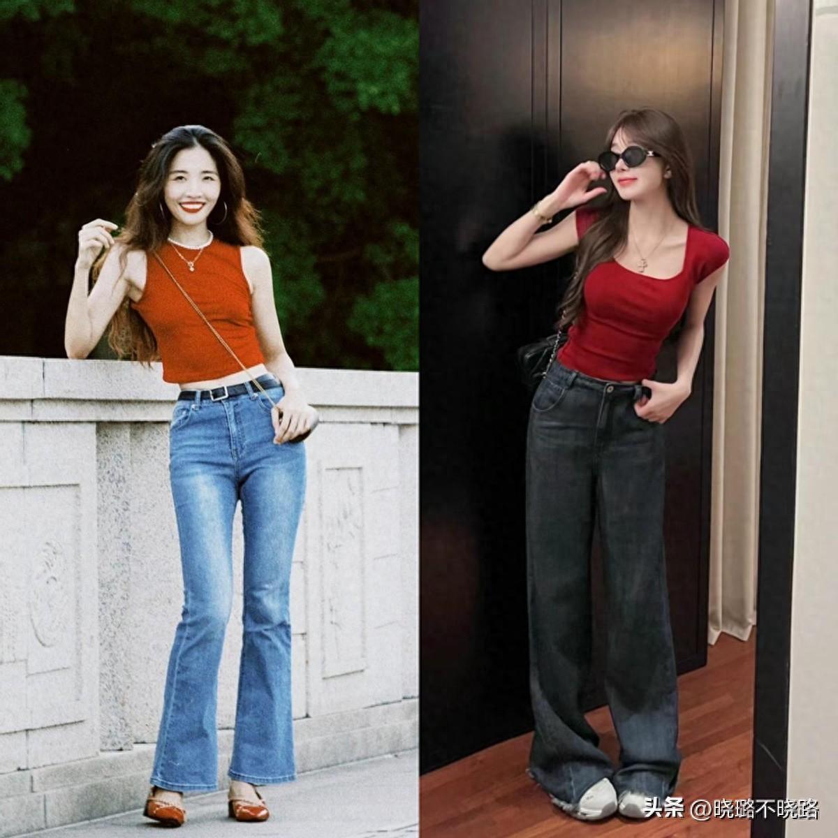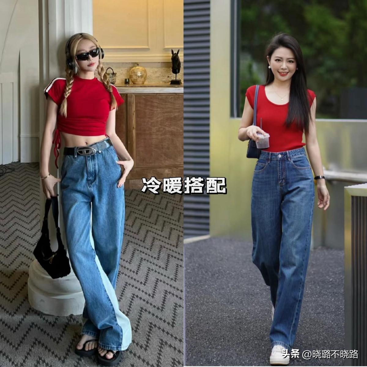 修身款式的上衣,更適合搭配寬鬆點的夏裝,一鬆一緊,才能營造出和諧之美。丹寧藍牛仔闊腿褲,和復古紅T恤就是絕配,穿出街回頭率100%。