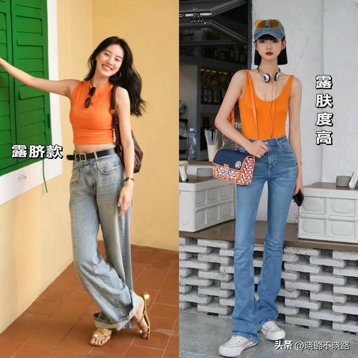 想要讓穿搭主次分明的話,就可以選擇一條短款的活力橙背心,背心的款式露膚度比較高,能夠和膚色形成互補狀態,既明確了整體的重心,又能夠修飾肌膚,一舉兩得。