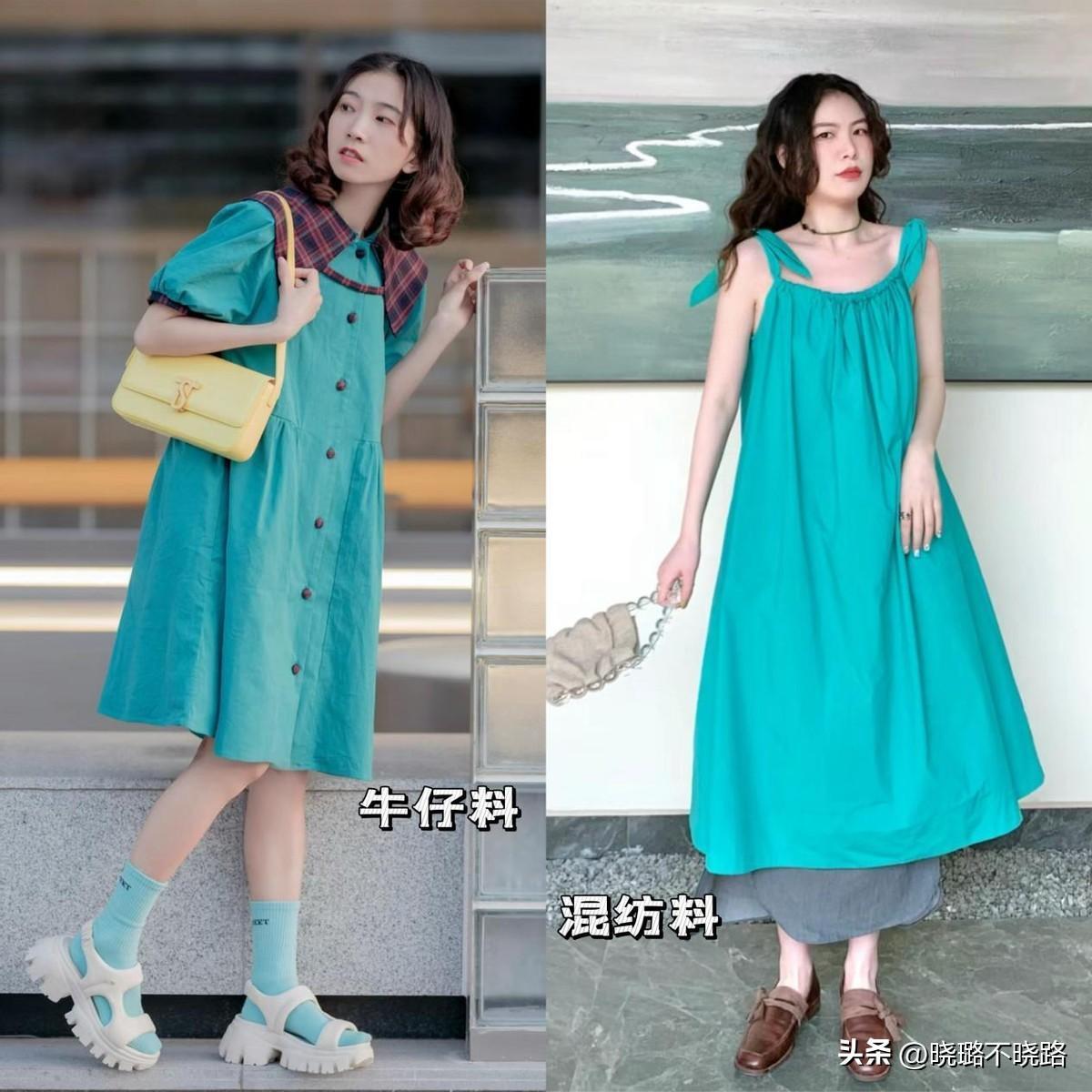 其次,我們還要關注到服裝面料的重要性,湖藍色的單品,面料材質不能太軟塌,稍微帶點硬度的牛仔、混紡、棉麻材質,更能突出色彩的優勢。