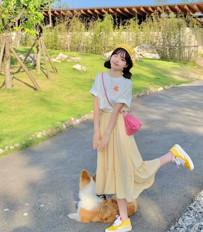 橘子味的穿搭,你聞到了沒?白色的短袖t,胸前是一個小橘子圖案印花,增添了幾分俏皮可愛,搭配一條同色系的半身長裙,讓整個穿搭看起來清爽又充滿活力。雙丸子頭的設計,更是增添了幾分青春氣息,甜美少女風的既視感。