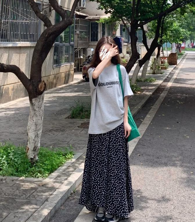 T恤 + 半身裙這麼穿,太美了