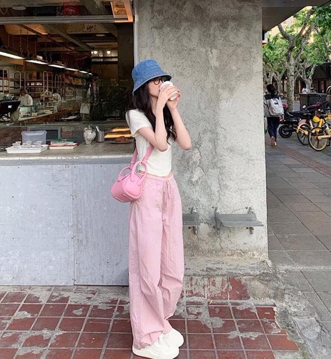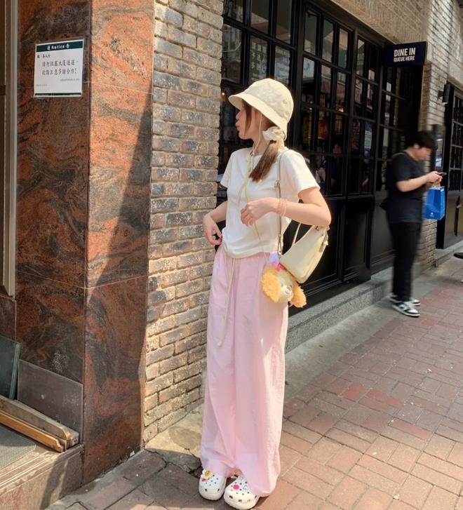 今年很流行粉色系的穿搭,所以,不如給自己入手一條粉色褲子如何?它的面料穿起來很舒適,清涼且透氣。最重要的是它不容易起皺,垂墜感也是極佳的,搭配簡單的T恤或背心,就顯得很時尚大方了。