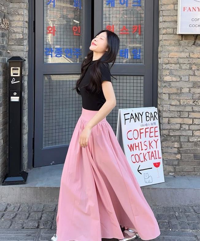 韓式甜美風十足的穿搭,喜歡的姐妹就衝吧,短袖t恤與粉色半身長裙的組合,不僅時尚,還帶着幾分甜美可愛。在春夏季節,這樣的穿搭就是很吸引人眼球,長款的裙子,有助於遮掩起身上的各種缺點。