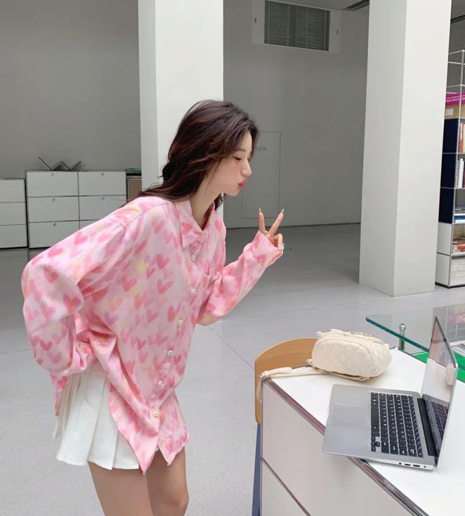 不喜歡穿t恤的姐妹,就給自己入手一件襯衫吧?特別是這麼一件粉色襯衫,它兼具了甜美韓系風,自帶滿滿的少女範。上面增加了愛心印花圖案,穿起來可以展現出獨特的氣質。