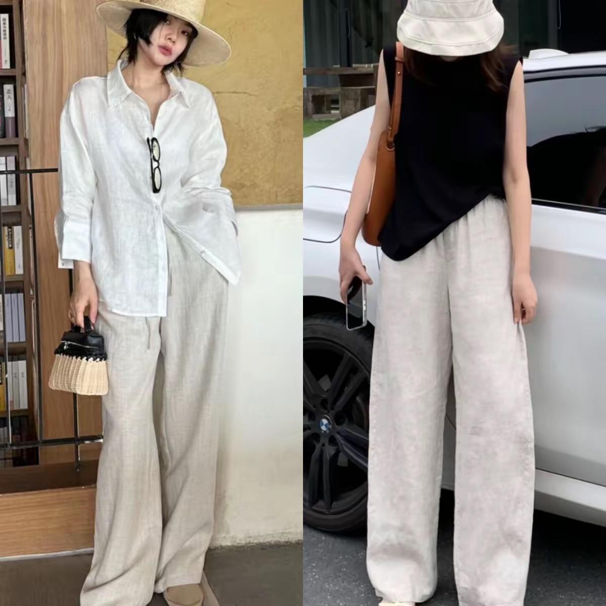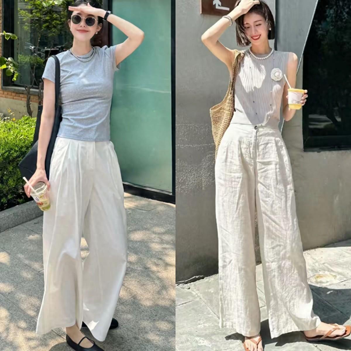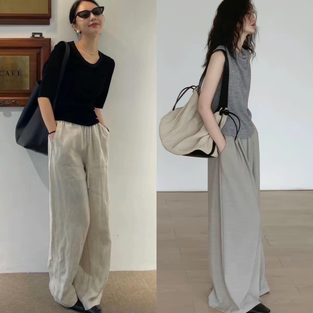 夏天裏純棉或者莫代爾純棉的T恤,以及棉麻或者亞麻的闊腿褲,都是書寫鬆弛感穿搭的時尚單品。