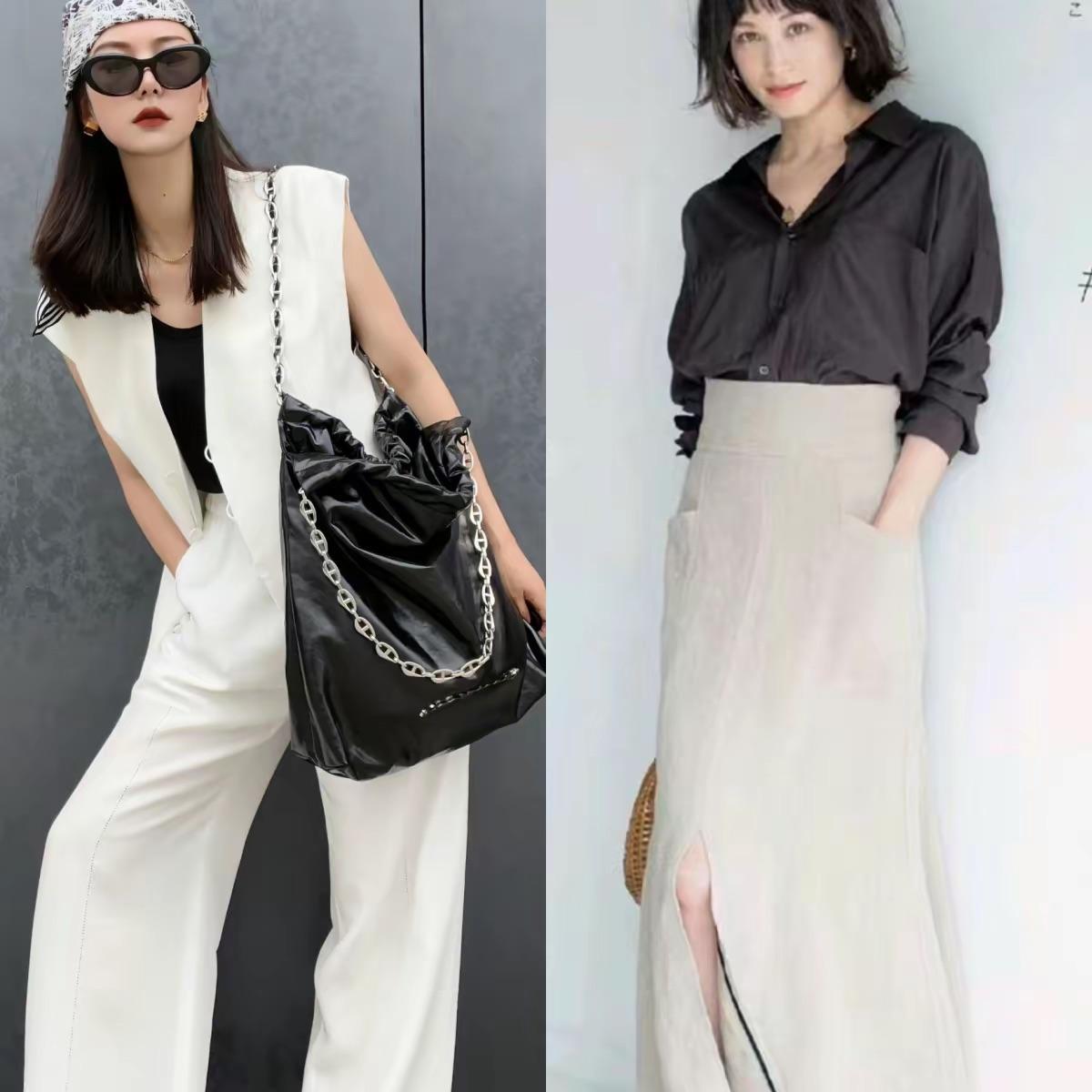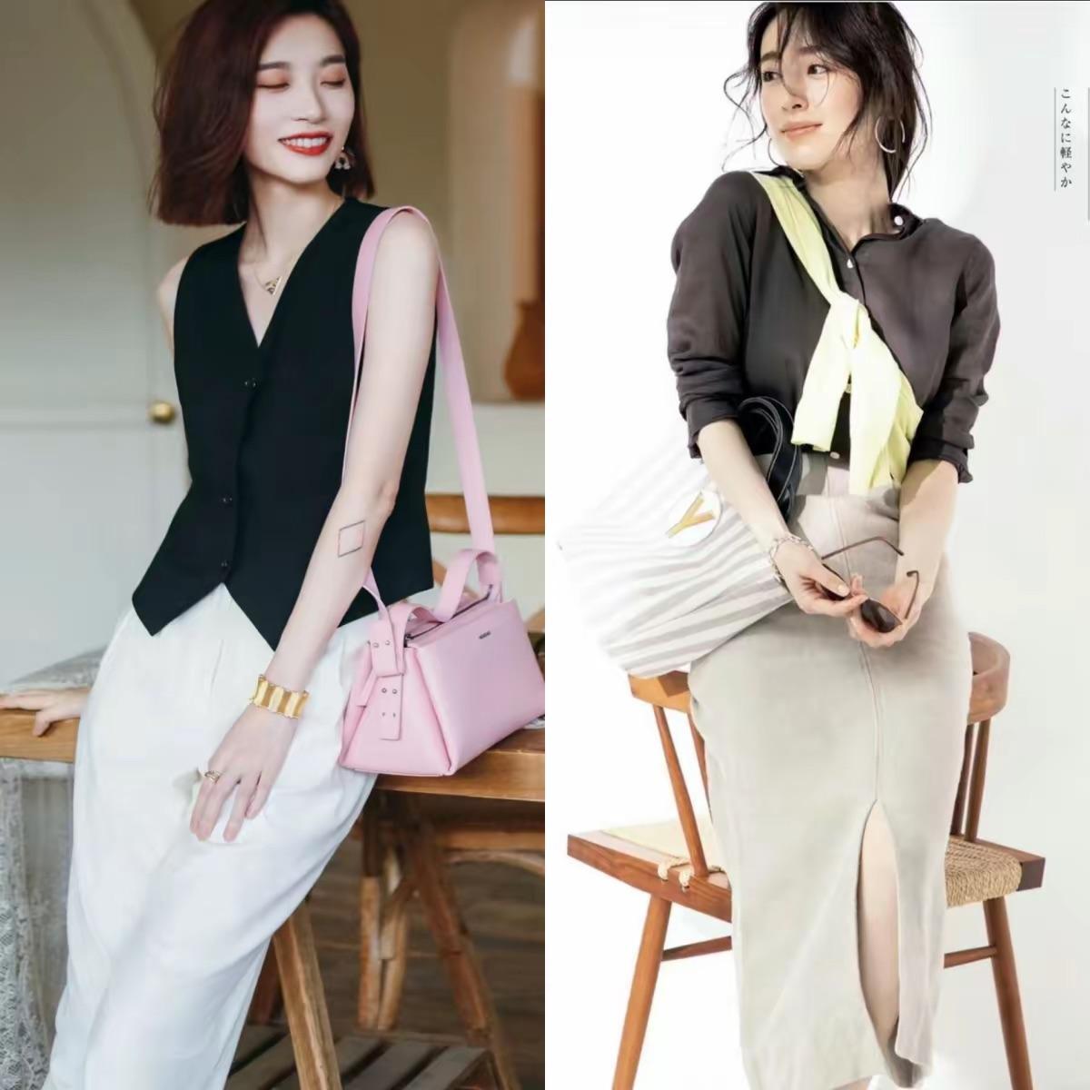 寬鬆馬甲+白色闊腿褲的搭配,會更加時髦考究一點,適合通勤上班的女性。而寬鬆襯衫+修身半身裙的搭配,會更注重女人味的呈現。