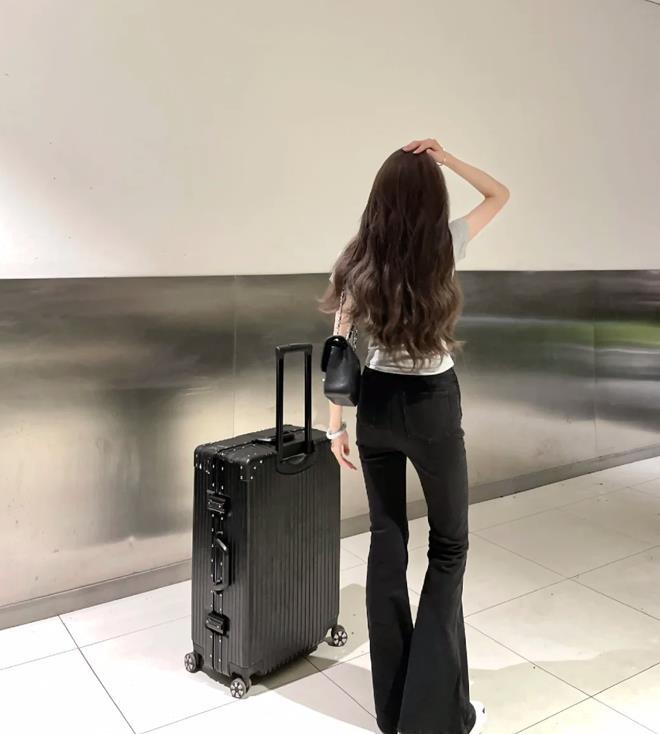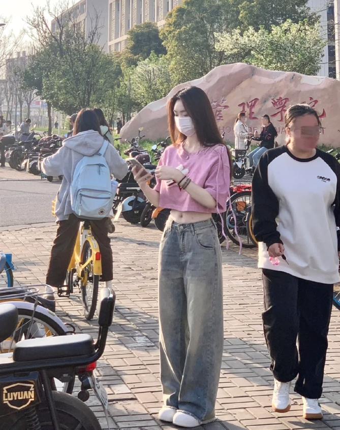 短上衣+低腰長褲,這一套上短下長的組合,實在是太愛了,專屬於小個子女生的穿搭,微喇版型的長褲,穿起來不僅顯氣質,還能很好修飾腿部線條,打造出大長腿的既視感。