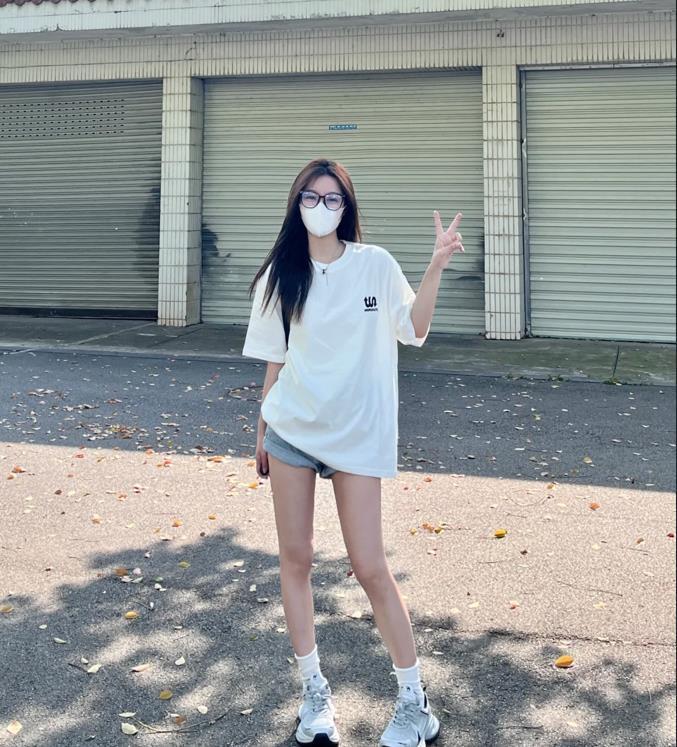 這一套簡直戳中我心窩,少年感和少女感並存,很適合小個子女生們穿,輕鬆打造出高挑感,還能彰顯出大長腿。白色長款t恤,很乾淨舒服,下身配的是一條牛仔短褲,舒適又養眼。