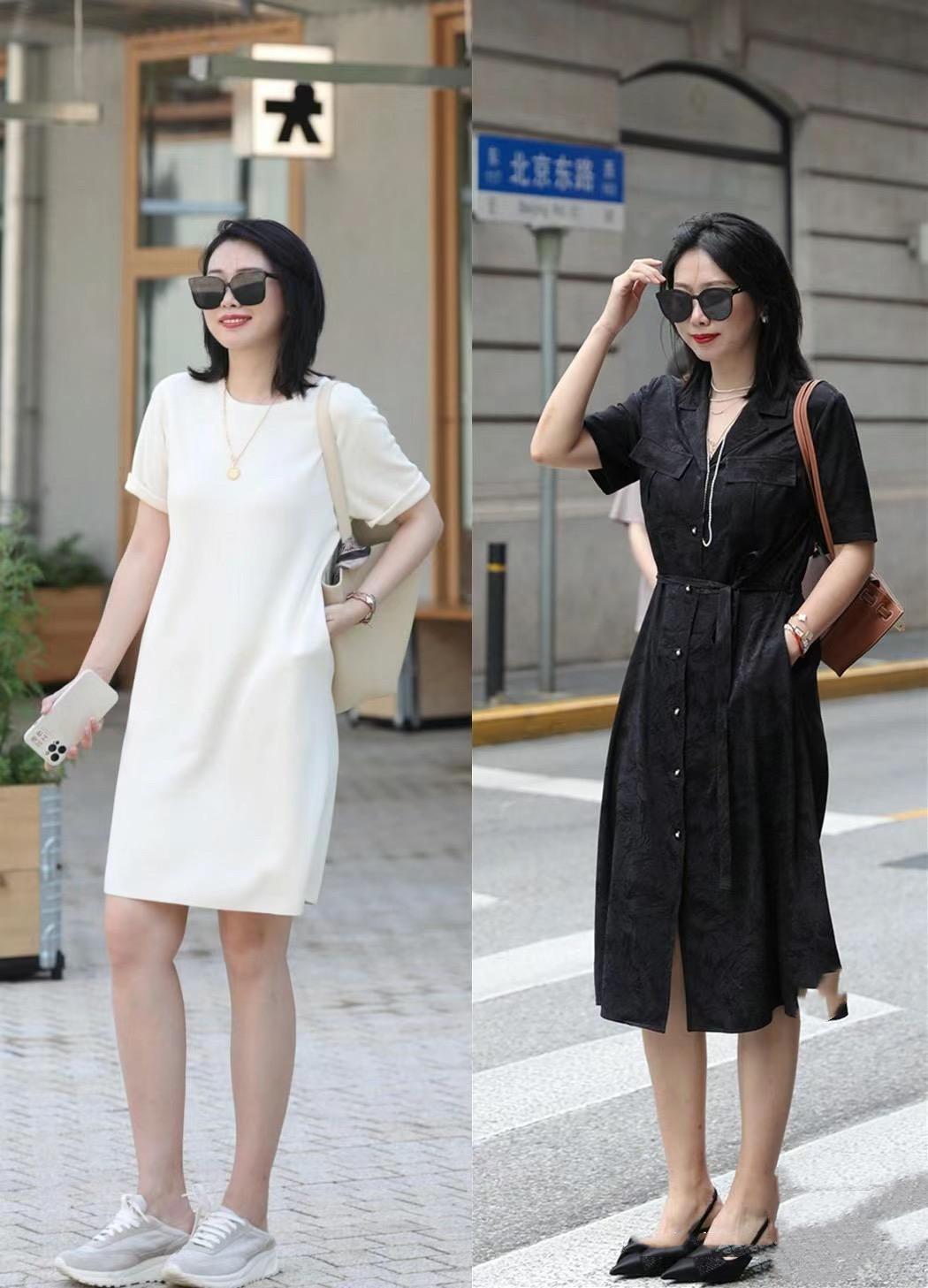 像極簡風的白色連衣裙,小直筒的款式、配上小收腰的設計,簡單清爽、對於身體形態也擁有足夠的修飾性。黑色的襯衫裙,更加高級大方,配一雙尖頭高跟鞋格外洋氣。