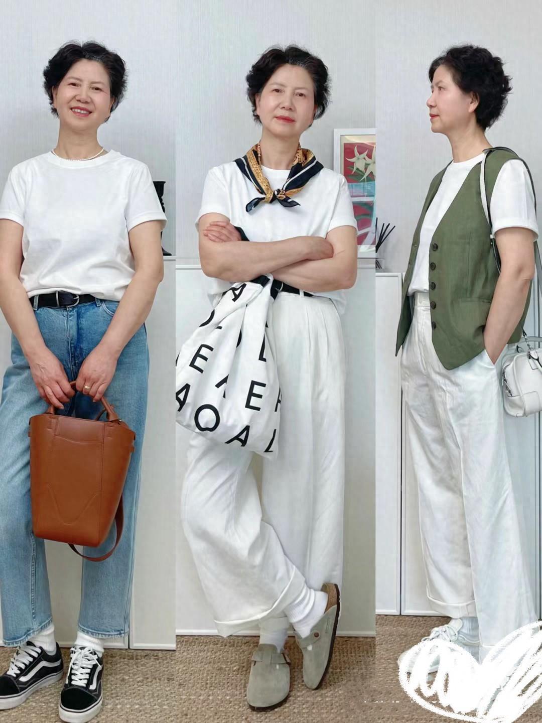 衣穿淺色,是對中年時尚最好的詮釋。白色的T恤、淺藍色牛仔褲、白色的闊腿褲、淺色系的連衣裙,都可以弱化年齡感,讓你輕鬆告別“姨味”。